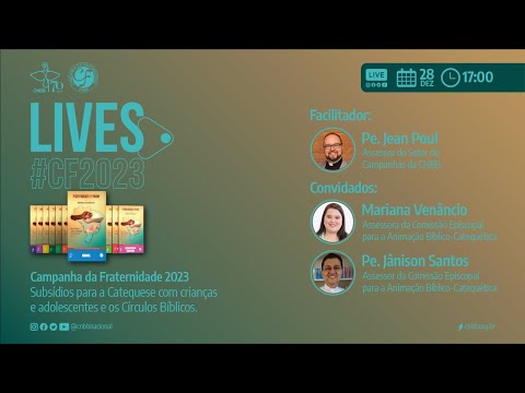 O Setor de Campanhas da Conferência Nacional dos Bispos do Brasil (CNBB) promove na quarta-feira, 28 de dezembro, das 17h às 17h30, a quarta live da série “Lives#CF2023” que divulga os subsídios específicos da Campanha